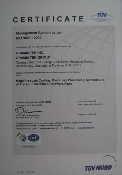 ISO/TS16949認(rèn)證,為更好地為車廠提供汽車配件製造服務(wù),本公司于2008年順利通過TUV及BSI認(rèn)證TS技術(shù)規(guī)範(fàn),使得品質(zhì)管制升級(jí)為技術(shù)規(guī)範(fàn)來開展。