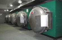 圖為真空乾燥車間,與傳統(tǒng)空氣乾燥相比,真空乾燥可將殼模生產(chǎn)週期從七天以上降至1天以內(nèi)。並且真空爐內(nèi)能夠充分有效地乾燥型殼中的硅溶膠及水份,提高型殼強度和