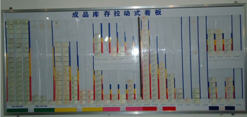 成品超級市場,包裝完成後成品入成品倉,上超級市場看板,客戶拉動資訊直接回饋到看板上,與毛胚超級市場對接,建立JIT生產模式,實現(xiàn)準時化生產作業(yè)。 |